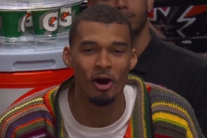 本场比赛文班亚马作壁上观,比赛中他坐在场边,对着开拓者球员喊话:“你们本应该0-4落后。”