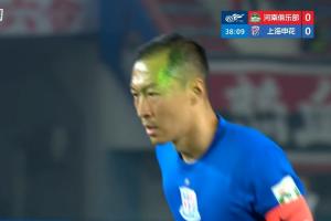 体育资讯04月26日讯 中超第8轮,河南vs上海申花,比赛第39分钟裁判判罚点球,吴曦主罚点球时,主场球迷用激光笔照射影响吴曦,但吴曦还是主罚命中。