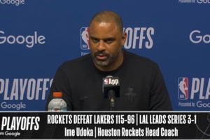 体育资讯4月27日讯 火箭在主场以115-96击败湖人,将系列赛比分扳至1-3。赛后乌度卡接受了媒体采访,以下为采访全文。
