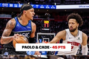 本场坎宁安砍下45分4篮板5助攻;班凯罗砍下45分9篮板7助攻2抢断。