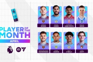 英超4月最佳候选:谢尔基、奥赖利领衔,鲍文、怀特、奥卡福在列