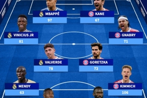 体育资讯4月15日讯 德国转会市场根据拜仁和皇马现役球员的欧冠出场次数,排出了拜仁+皇马欧冠出场最多阵容。