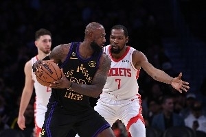 詹姆斯砍下28分——包括下半场的14分——带领湖人以101-94击败杜兰特和火箭。